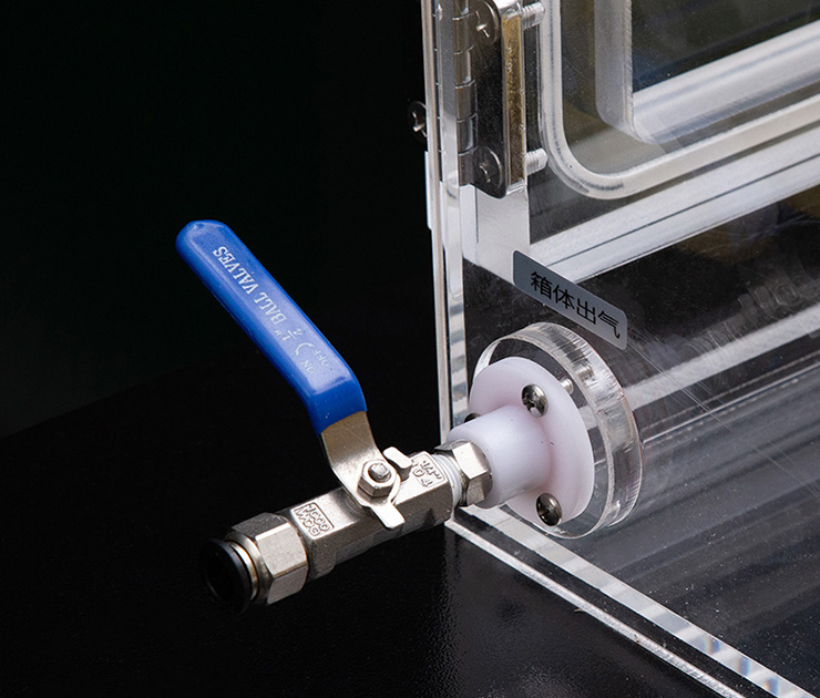 •This is a mini glove box, usually used for simple sealing tests, but also by displacing inert gases to create a low water and low oxygen atmosphere.